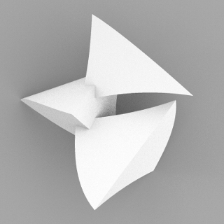 When the design was complete, and I had assembled the first paper model, I turned it in my hands and noticed that it looks a bit like a mouse head from one angle, then I saw a crab claw from another angle, thus the title “Crabby Mouse”.