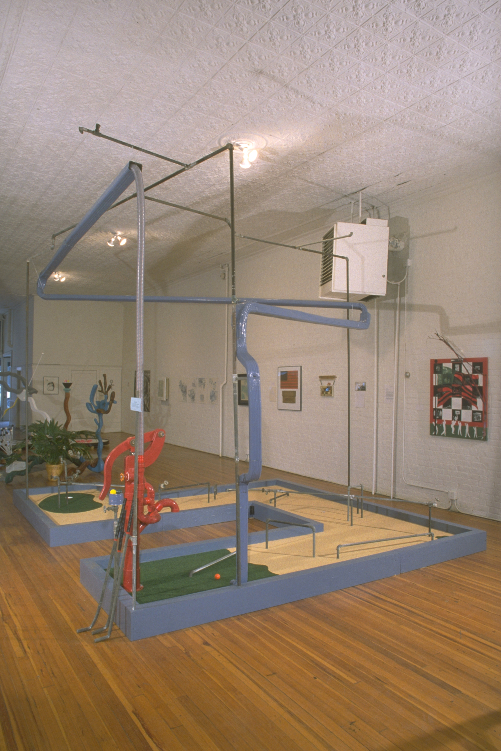 I created this installation as part of Par None, an artists’ mini-golf course / interactive exhibition. I chose to visually explore water scarcity and political allocation of resources.
